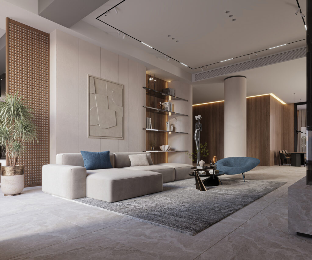 تصميم مساحة معيشة بأسلوب حديث (modern)